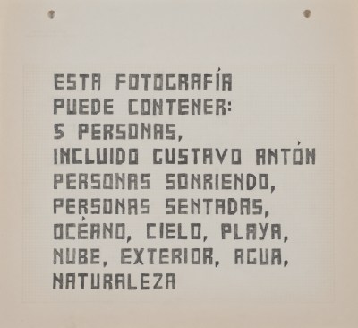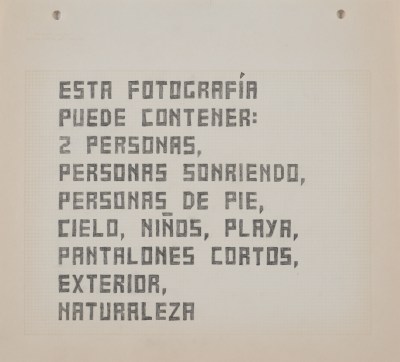 En la serie AAT encuentro la forma de acceder a ese texto, que en general está oculto, y hago una transcripción de esa descripción. Me interesa olvidar, por un momento, el malestar por la certeza de la vigilancia y autorizar a esta aplicación como un ser con habilidades literarias. Acaso, ¿no hay algo de poesía en esas descripciones absurdas, en estas enumeraciones disparatadas?